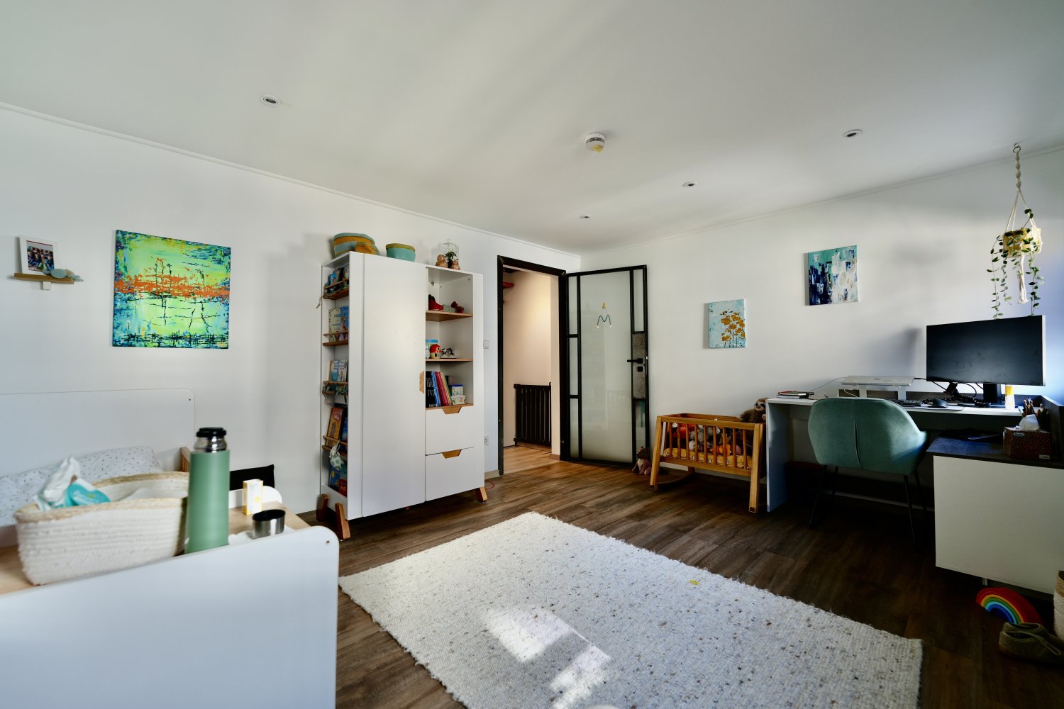 Das Reihenhaus ist mit geschmackvollem Laminat, Fliesen und Vinyl ausgestattet. Maßgefertigte Stahltüren geben dem Haus einen modernen Industrial-Look.